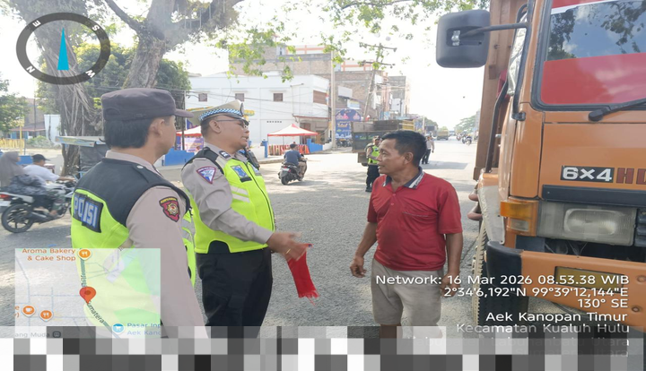 Pada hari Senin, 16 Maret 2026, personel dari Pos Pengamanan 2 Aek Kanopan Polres Labuhanbatu melaksanakan sosialisasi dan imbauan kepada pengemudi kendaraan angkutan barang sumbu tiga ke atas. Sosialisasi ini diadakan di wilayah Aek Kanopan, Kabupaten Labuhanbatu Utara, dengan tujuan untuk menginformasikan mereka tentang kebijakan baru yang diterapkan selama Operasi Ketupat 2026.